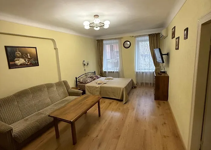 Apartment Krakivska 15 está situado en el barrio Plosha Rynok de Leópolis, a una distancia de 250 metros de Lviv Town Hall. Los huéspedes también pueden disfrutar de senderismo y bolos en la zona.